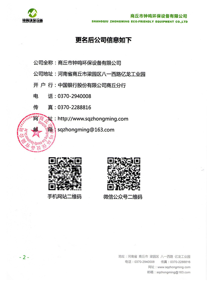即日起,商丘億龍正式更名為鐘鳴環(huán)保設(shè)備,具體請(qǐng)查看更名公告。